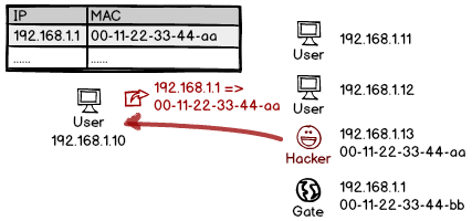 事实上,早期的系统还有个更严重的BUG:直接给用户发送一个 ARP 回复包,即使对方从没请求过,系统也会接受这个回复,并提前保存里面的记录。这种基于缓存的投毒,让劫持成功率更上一层楼。