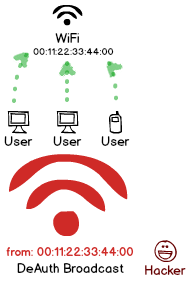 之前提到,遍历 PPPoE 的会话ID,冒充所有用户发出注销请求,可以断开全城的网络。WiFi 也有类似的缺陷,只不过正好反过来:冒充热点,向所有用户广播注销包,于是所有连着该热点的用户都下线了。