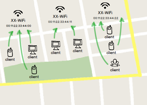 但是同时存在那么多热点,搜索列表里显示的却没有几个。因为他们都有着同样的热点名(SSID),客户端通常会将同名热点合并成一个。至于连接时,系统会选择信号最好的那个。如果这些热点的认证方式也是相同的,无论连哪个都没问题。