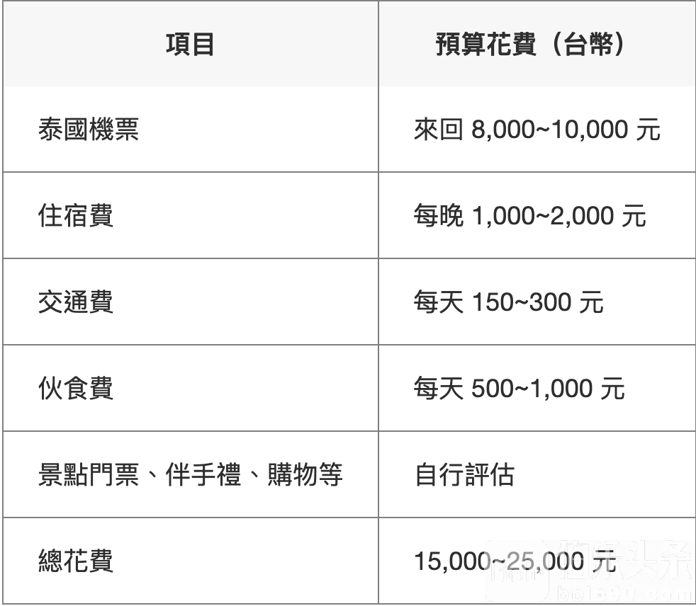 泰国的旅游费用相对较低,假设您计划5天4夜的自由行,预算大致为15,000到25,000元台币,具体费用会根据个人消费习惯和旅游淡旺季有所不同。住宿、餐饮和交通等方面,泰国都提供多种选择,适合不同预算的游客。