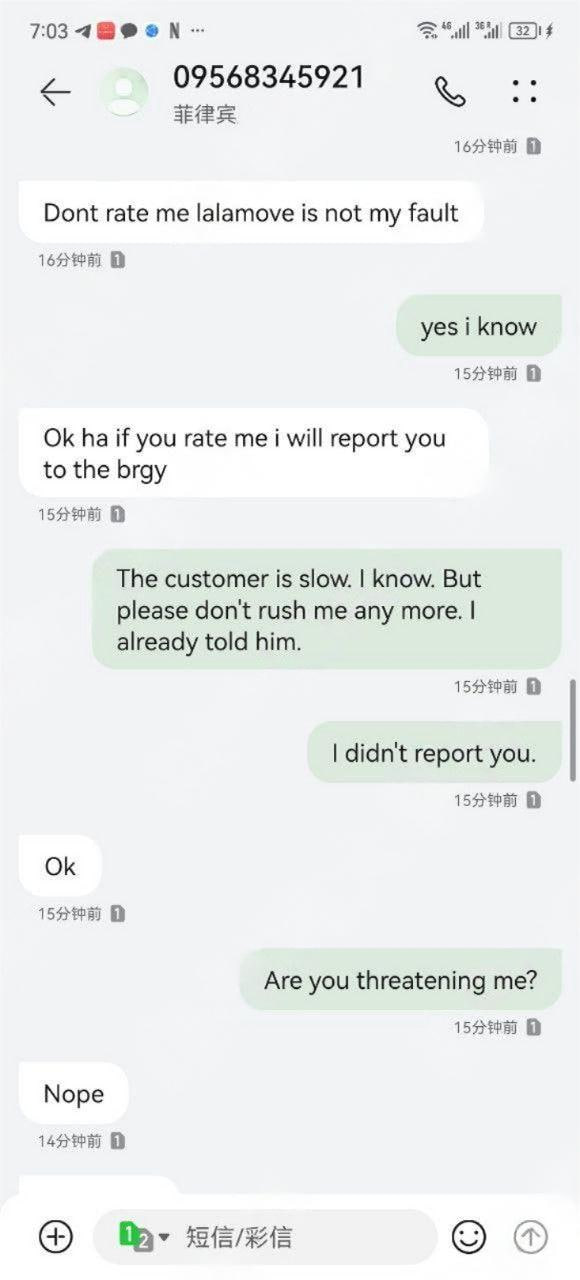 互动论坛 聊天灌水 菲律宾送餐骑手屌炸天,一个差评就要威胁杀我全家!