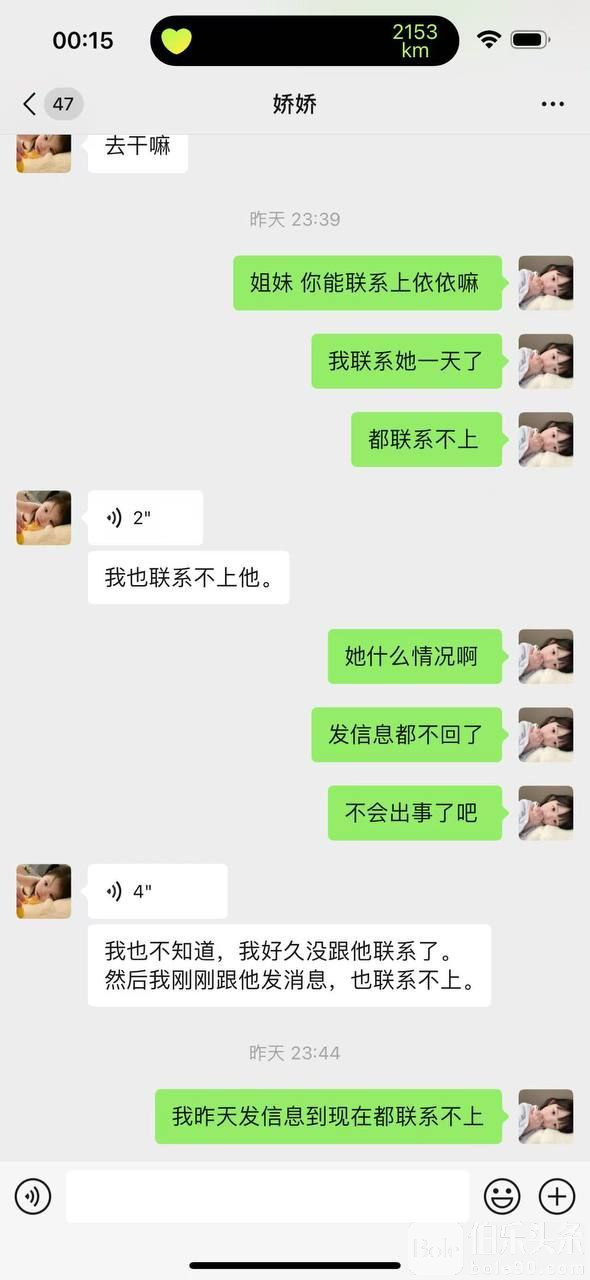 湖南的一个女孩子 外号叫依依 最后一次联系上她是她在新加坡说要去马来西亚  然后到了马来西亚 后面就联系不上了 打电话关机 信息不回