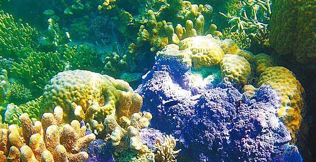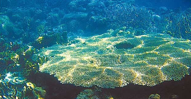 在船舰残骸处浮潜,可以看到不少圆桌型轴孔珊瑚。