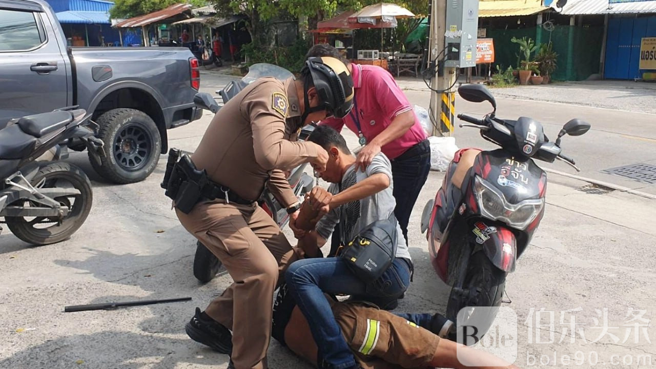 泰国春武里市一名32岁男子因点餐纠纷情绪失控,在发现自己点的泰式炒河粉被错误加入葱和韭菜后大发雷霆,不仅砸毁餐厅招牌,还持刀闯入便利店。