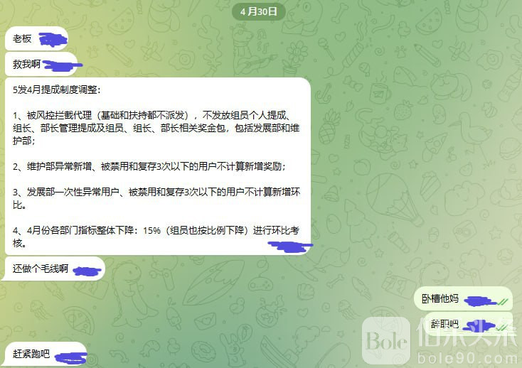 我找的代理有玩家输钱了,你为什么不给我发提成?这不明抢这是什么?这是要杀员工了吗?你调整为什么月初的时候不通知,等月底做出来业绩的时候你再通知,现在大环境这么不景气,世界杯也快到了,安稳一下不好吗?