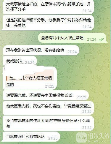 现在我财务出现状况,没有钱给她,她就威胁我曝光我,还说要去中国举报我!!真是婊子无情哎!!