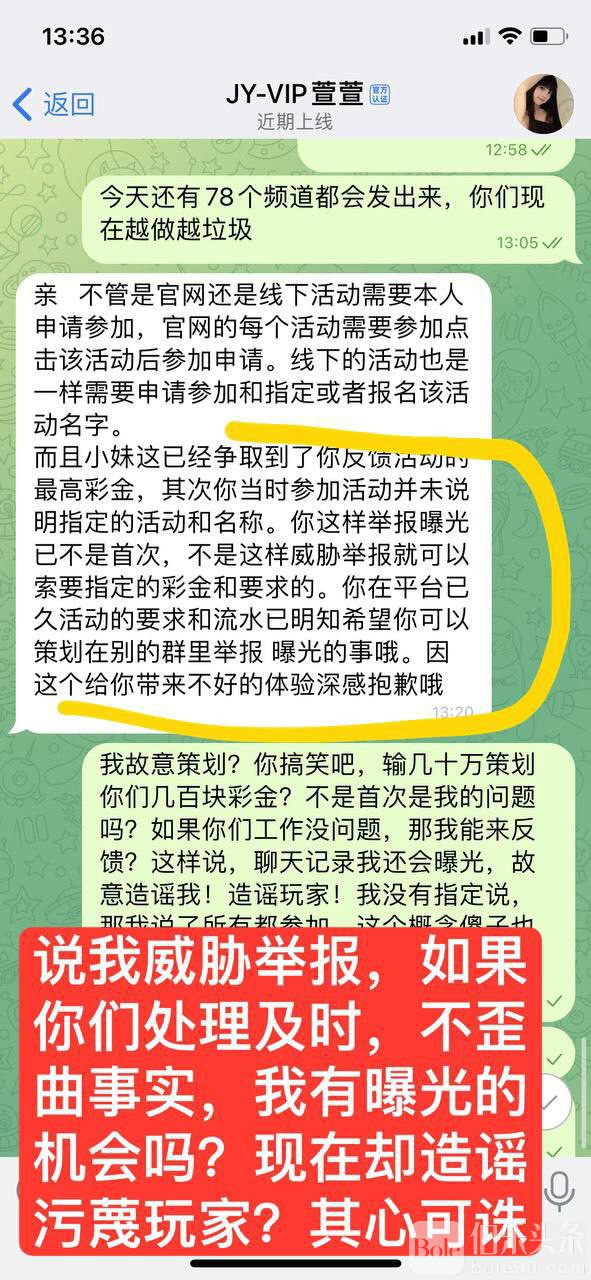 九游娱乐线下客服经理猖狂至极!居然说一个玩了一年多的玩家,输了几十万的玩家,策划敲诈勒索彩金?