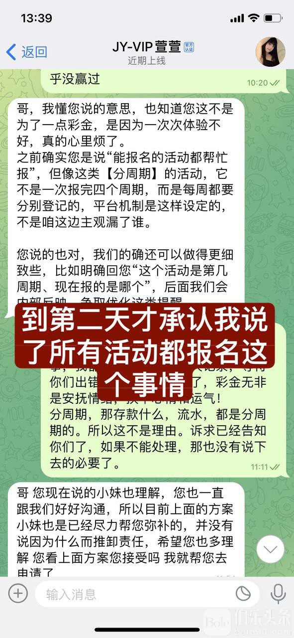 第一,是不是你们客服经理工作问题,给我多次造成漏登记活动,彩金不派发?我还不能反馈了?第二,输了几十万,就为了来你们平台策划敲诈勒索几百块彩金?九游平台上下都是这个格局,大家擦亮眼睛!真的垃圾!随便一个客服经理都口出狂言?随意侮辱造谣?诽谤玩家?