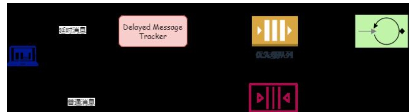 RabbitMQ 的实现方式有两种,一种是投递到普通队列都不消费,等消息过期后被投递到死信队列,消费者消费死信队列。如下图: 第二种方式是生产者发送消息时,先发送到本地 Mnesia 数据库,消息到期后定时器再将消息投递到 broker。