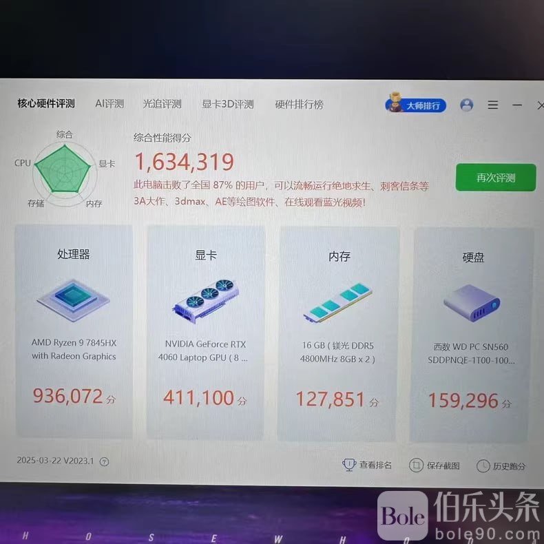 商品描述:华硕魔霸7Plus RTX4060 R9 7845HX 2K屏 240HZ笔记本电脑