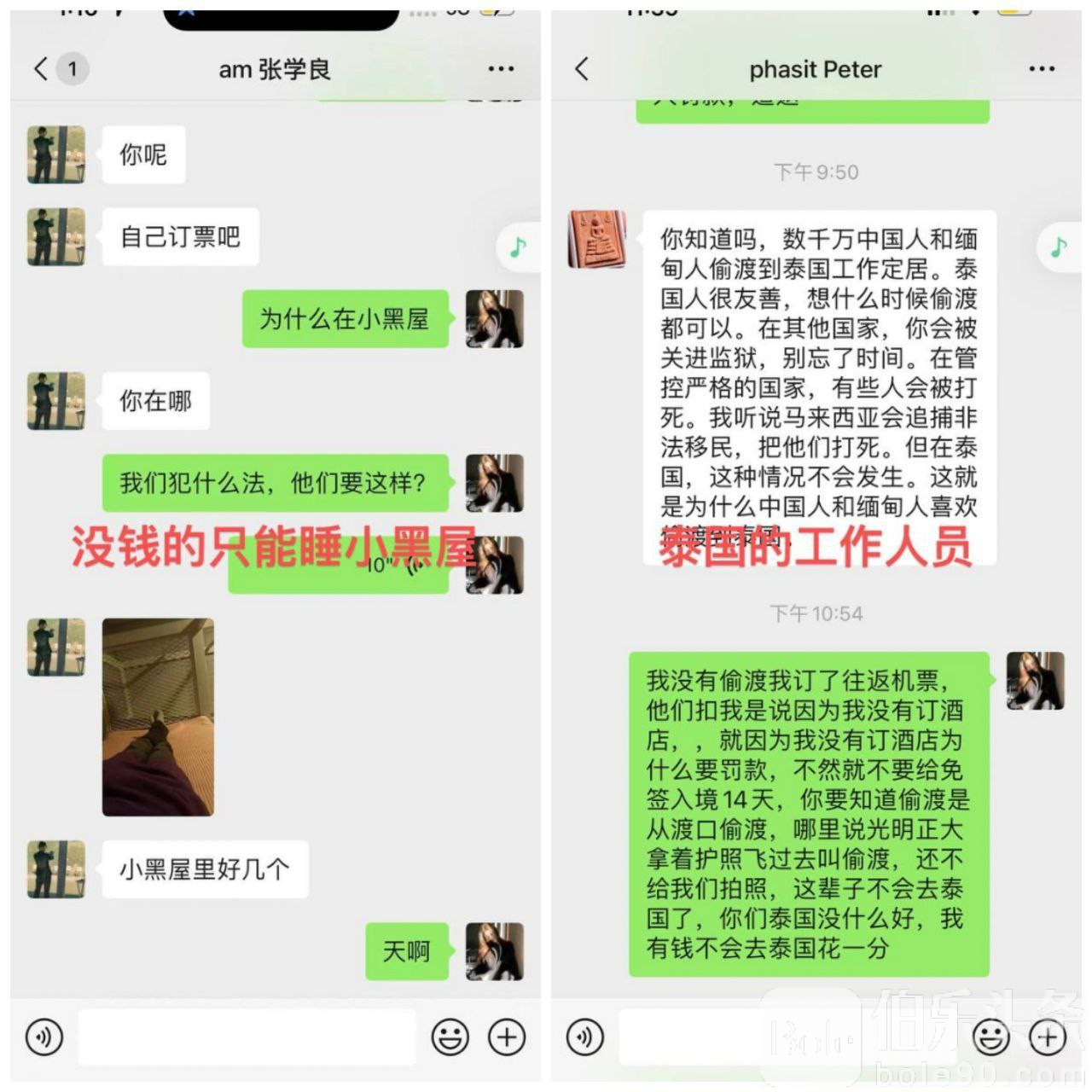 期间不能随意走动上厕所都跟着我,吃饭只能叫他们工作人员帮我们买,还不给我们拍视频,一天他们会扣下几百人,罚款几百人,是从5月1号开始的,跟我一起一批扣下几十人,没钱的他们只能睡小黑屋一天1070泰铢。