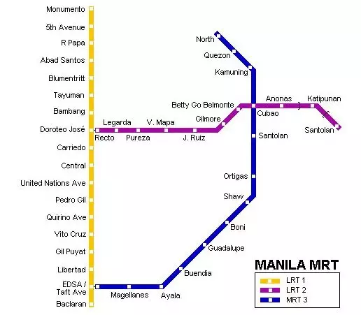 以马尼拉为起点,菲律宾国营铁路分南北两条线路。