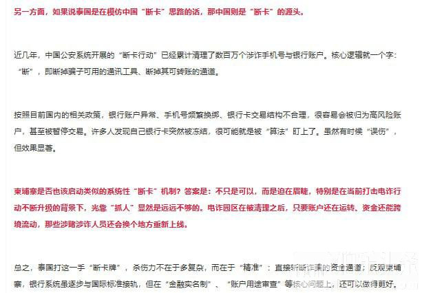 所以问题不在于“园区还在不在”,也不在于“换了哪个省”,而是谁掌握了银行账户的主动权;在未来,任何一个想要摘掉“诈骗国家”帽子的国家,都会被倒逼着迈出这一步:对银行账户“动刀”,而泰国已经出手,柬埔寨该跟还得跟。