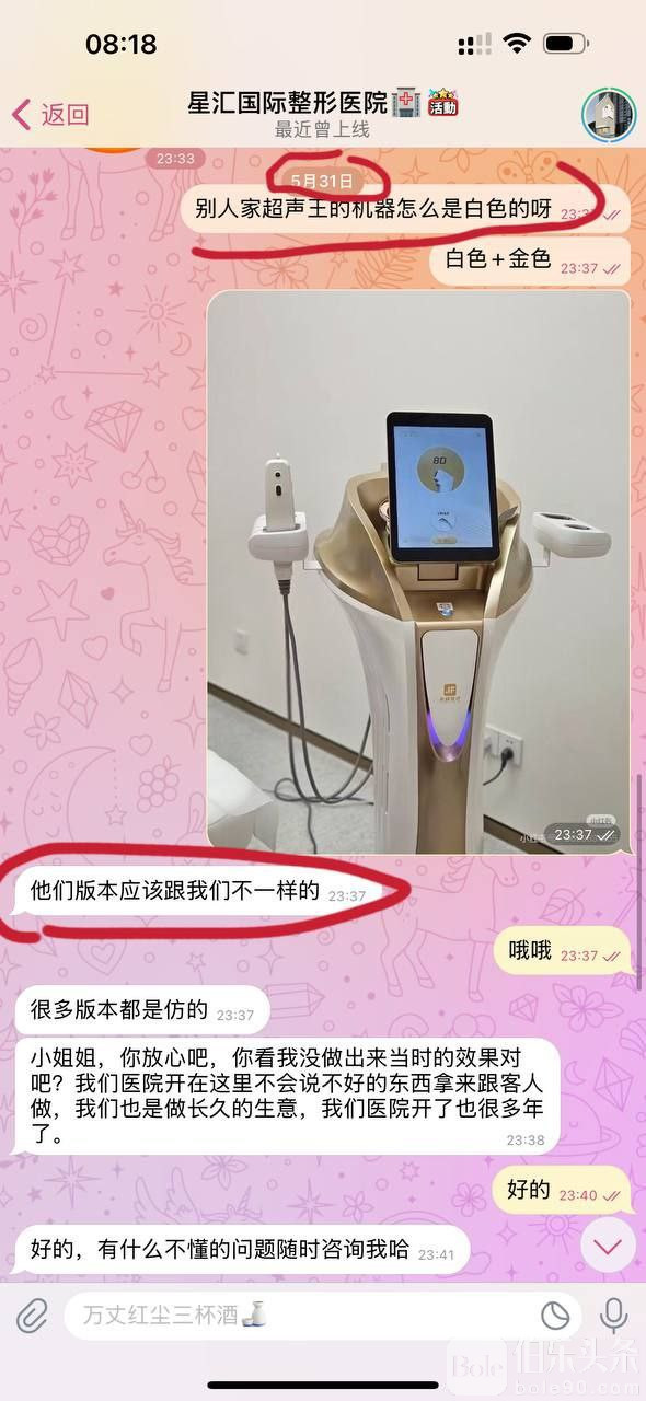 做完回家后我跟客服要了他们当时拍我的视频(视频里拍到了机器),我有点不放心,去小红书搜了超声王,发现仪器不对,我问客服怎么回事,客服撒谎说:版本不一样。