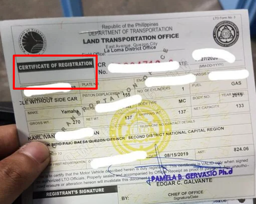 5 车辆 OR CR 原件 OR为最近年次年检的OR (一般是一年以内的就是新的,新车头三年同一张or)超出一年没有年检的 会有相应的罚款费用,每一年检正常费用大概一年8000比索(强制险+烟雾测试+车管所年检)