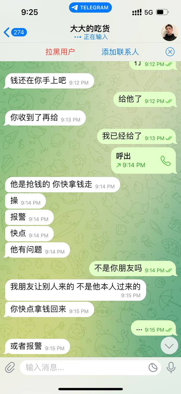 #网友投稿:10月10日下午,在小飞机换汇群联系人换汇,下午3点左右有人联系我换汇说让朋友晚上过来拿,晚上9点到了我家大厅外面,数完钱说转了就跑到当时过来的的士上走了。