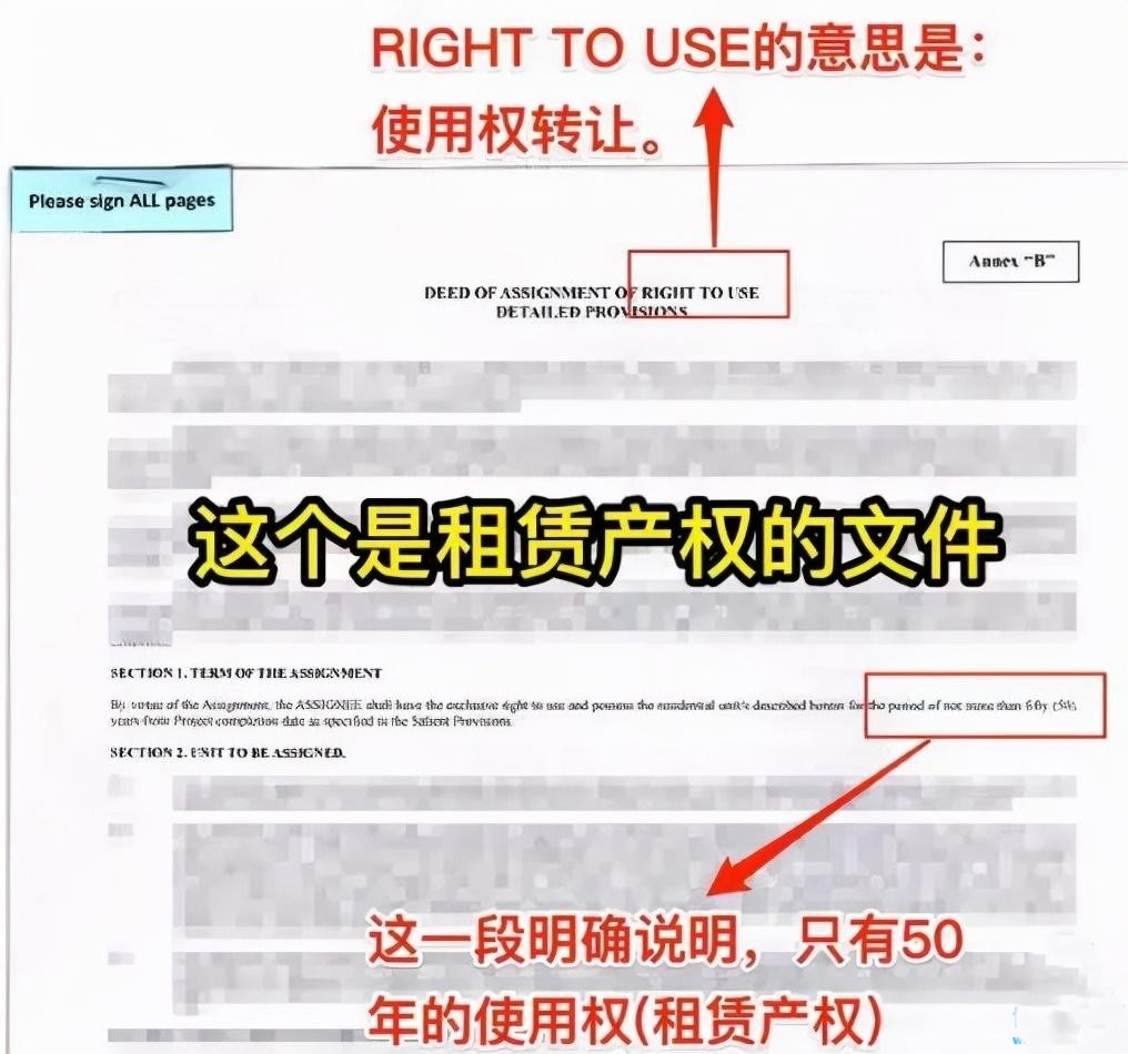 因为房子的产权还是开发商所有,所以租赁产权的房子,只有使用权转让协议,英文叫:RIGHT TO USE;而根本就不会有Contract to Sell(销售协议)。