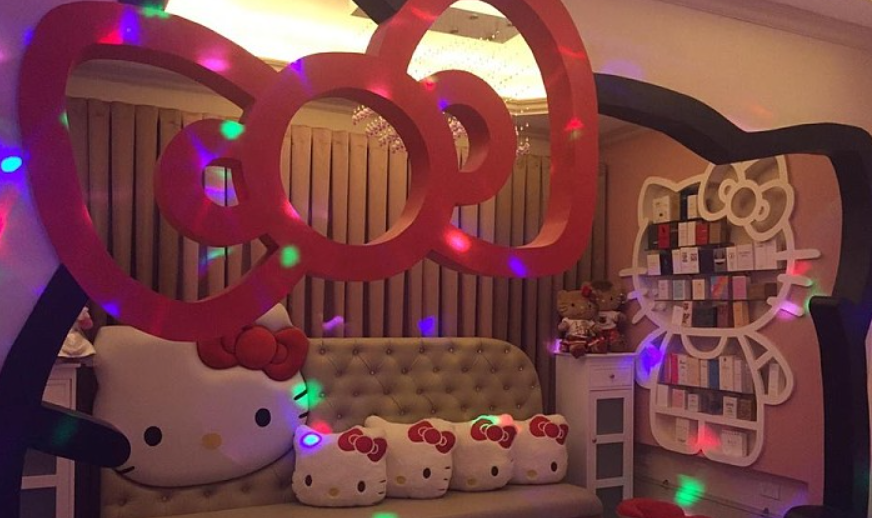 他家除了是KTV兼美容院以外,还有卖各种凯蒂猫相关的周边