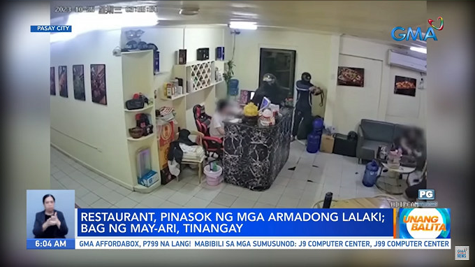 菲律宾马尼拉,2023年10月27日 - 两名武装人员持枪进入帕赛市(Pasay)一家餐厅,偷走了店主装有大量现金的包,导致餐厅工作人员受伤。