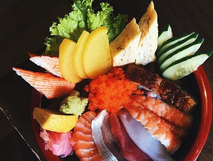 同样实力撩胃的海鲜丼料多到溢出来,海鲜控怎能错过呢?软糯的米饭上铺满了生鱼片,海老,鳗鱼,金枪鱼,蟹肉棒,蛋卷和鱼籽,加上一点酱油混合芥末,一口生鱼片一口米饭,感觉真的满足感爆棚了!