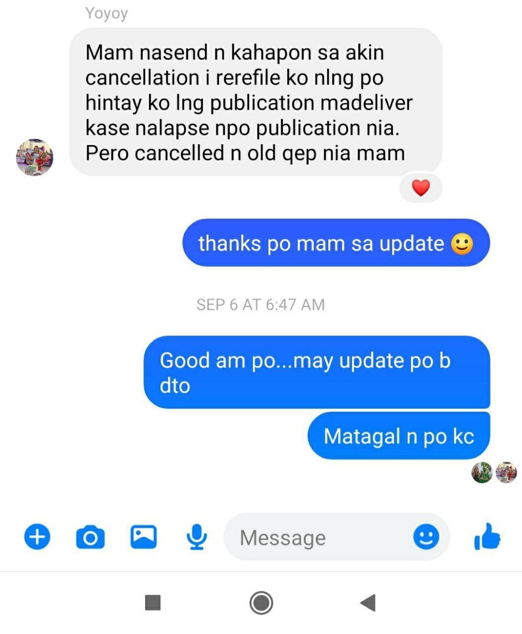 后面给他5万比索,然后让我们回去等,跟我们说两个星期就下来,我到两个星期我问她,我说办好了吗,她说政府休息日比较多比较慢,让我再等等。