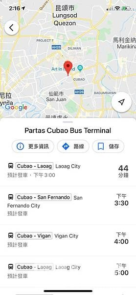打开谷歌地图输入「Partas Cubao Bus Terminal」直接定位前往上车地点