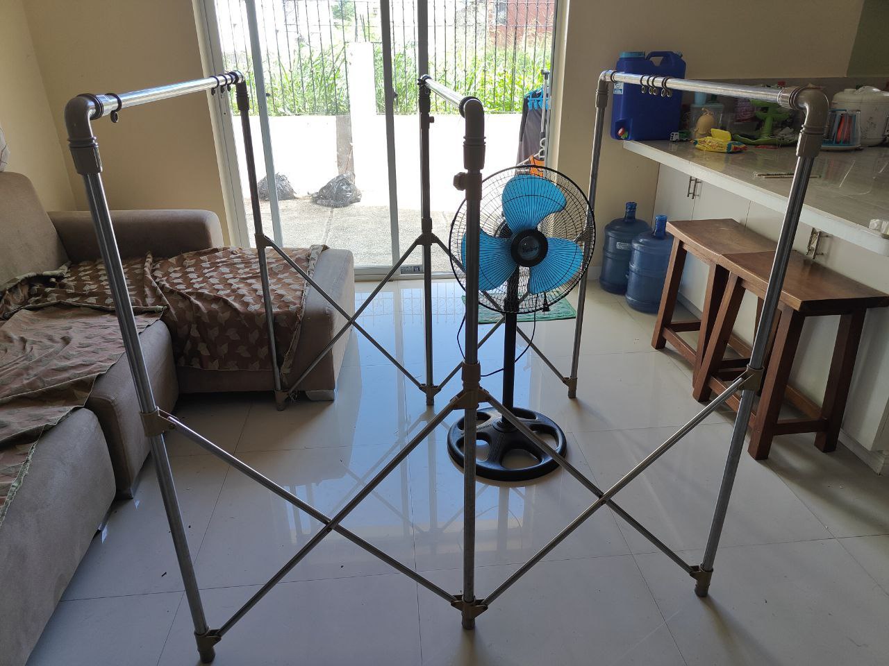 物品:超大晾衣架 + 风扇