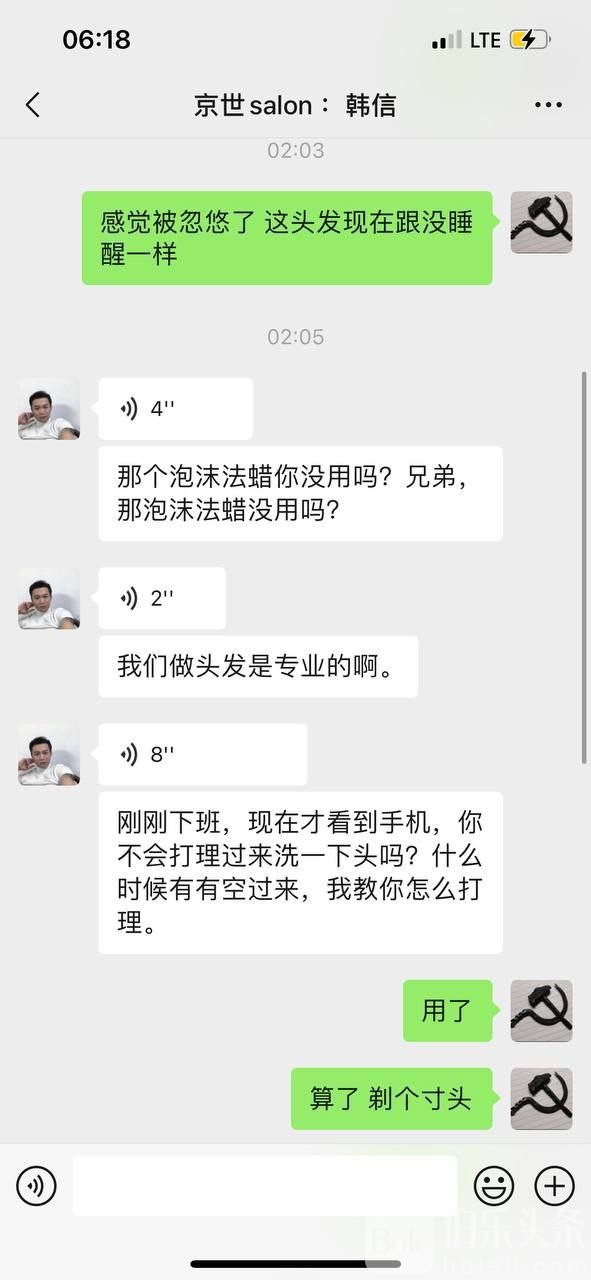 之前就听说认识的人去已经被坑一次了,剪头变烫头,不给钱不让走,一开始问了京世,以为是个误会,没想到后续身边的其他朋友又一个发生了相同的事,经过询问知道身边朋友又被黑了,要说硬烫就烫了,重点烫了和没烫没什么区别,想曝光一下,剪头需谨慎。
