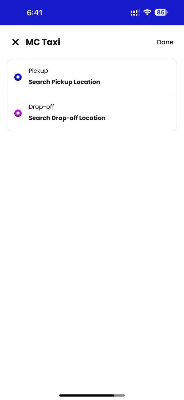 点击「MC Taxi」然后输入「你上车的地址」   「你下车的地址」 点击 Done 会显示出车费