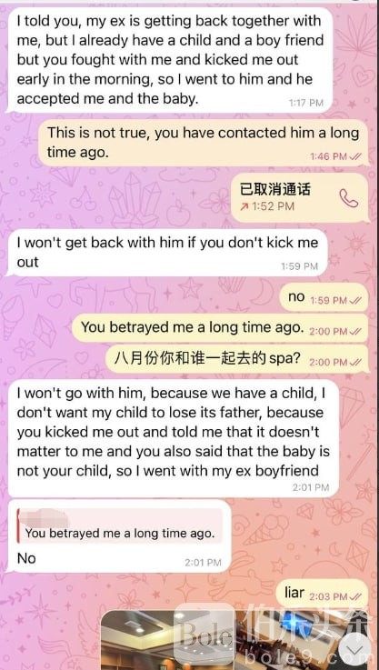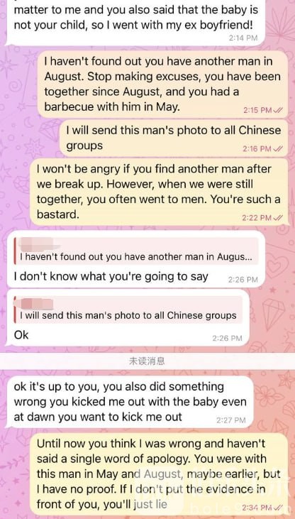 当天早上就开始清东西让她滚出去.本来想着分手就算了,直到昨天 我朋友看到了一个男的跟他去六福买东西,然后我朋友来问我是怎么回事,为什么跟其他中国秃头去买东西还带着孩子跟保姆