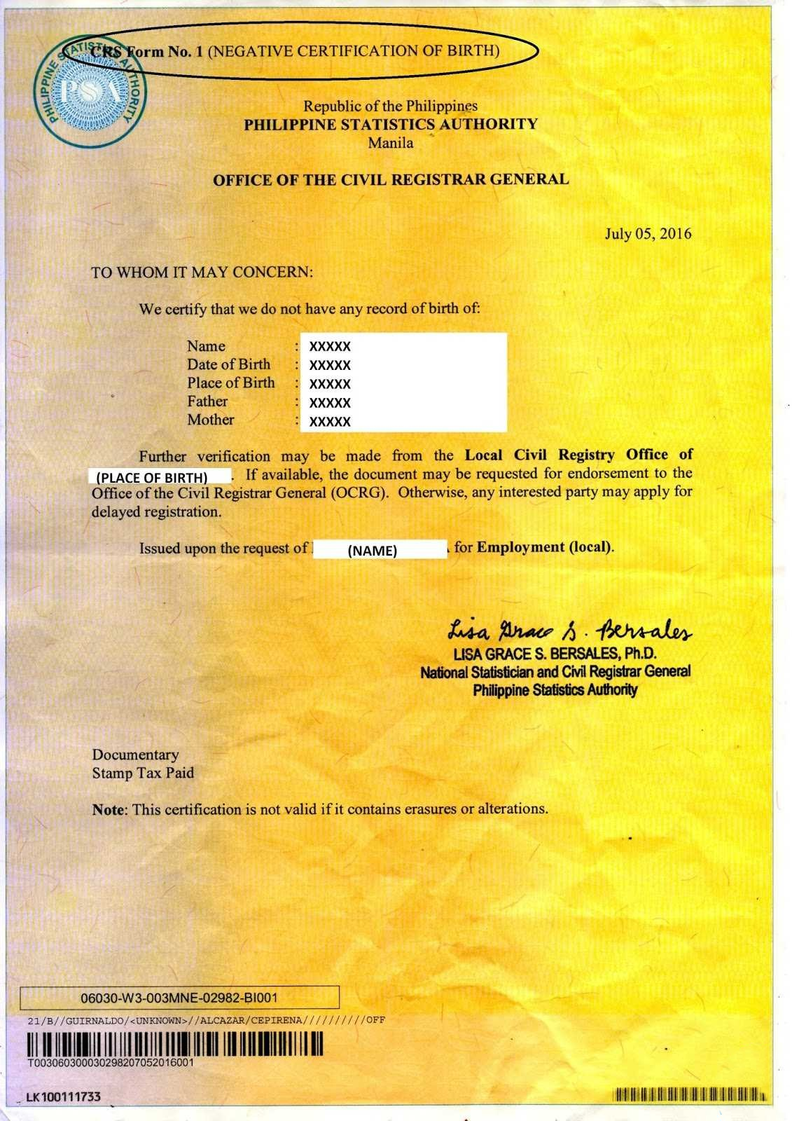 这个市政府认证的出生证明在宝宝办理菲律宾其他证件时也会需要,记得保存好收据。市政厅会将信息交给菲律宾国家统计署(PSA)