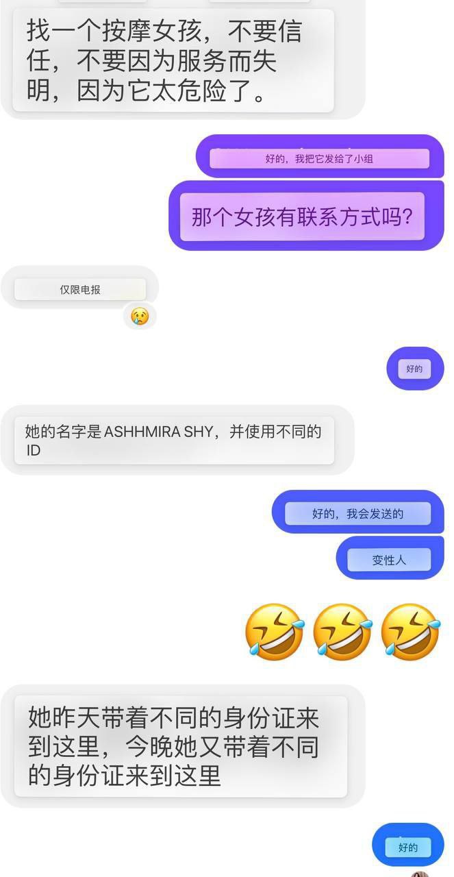 八卦一个,网友在telegram上邀请按摩的女孩去家里,但是女孩带了一个人妖去了。一进来 就四处翻找,准备实施绑架。