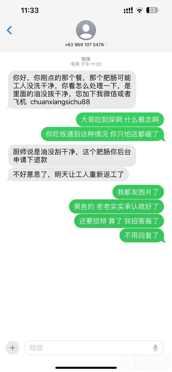 曝光菲快送外卖平台 包庇那些商家 肥肠没洗吃到屎了 还逼逼赖赖 也不让评论
