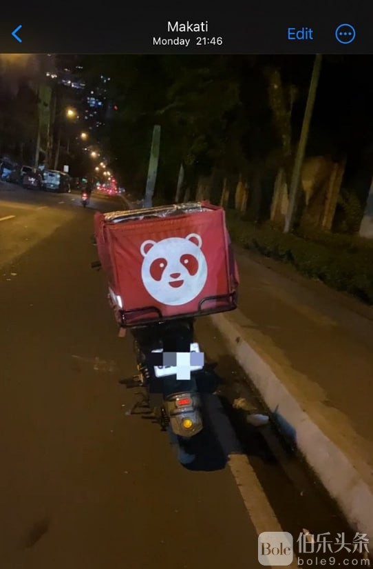 这个礼拜一晚上9点左右,骑摩托准备从makati回taguig。车刚离开停车场,一开起来就觉得失去平衡,不太对劲,下车一看原来是后车胎没气了,于是找附近的修理店,都关门了,于是准备回停车场,路上一个foodpanda骑手见状帮我简单检查一下,虽然由于缺少工具,没修好,还是为小哥举止点赞