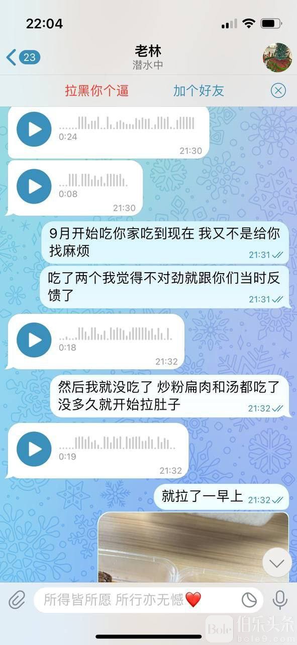 回家就吃上了 吃了两个鸭脖发现不对劲立马联系了他们,没多久就拉肚子而且是拉了一整天。次日联系他们,后续他们所谓老板联系上我说有问题会负责,然后还来指责我说为什么都没事就你有事?