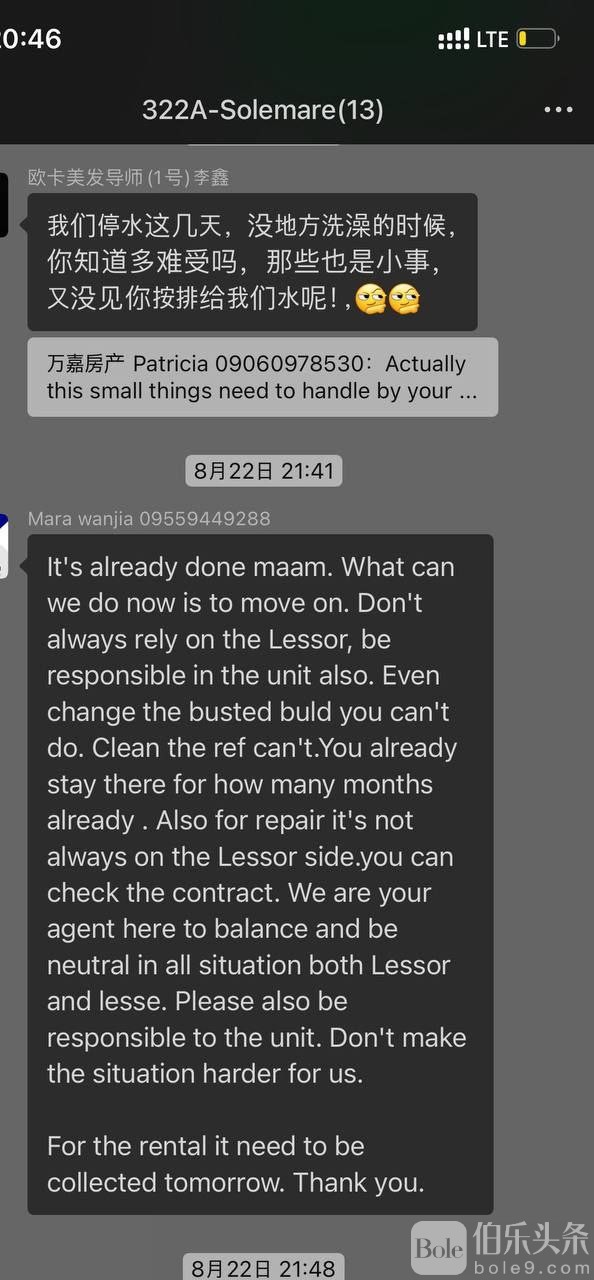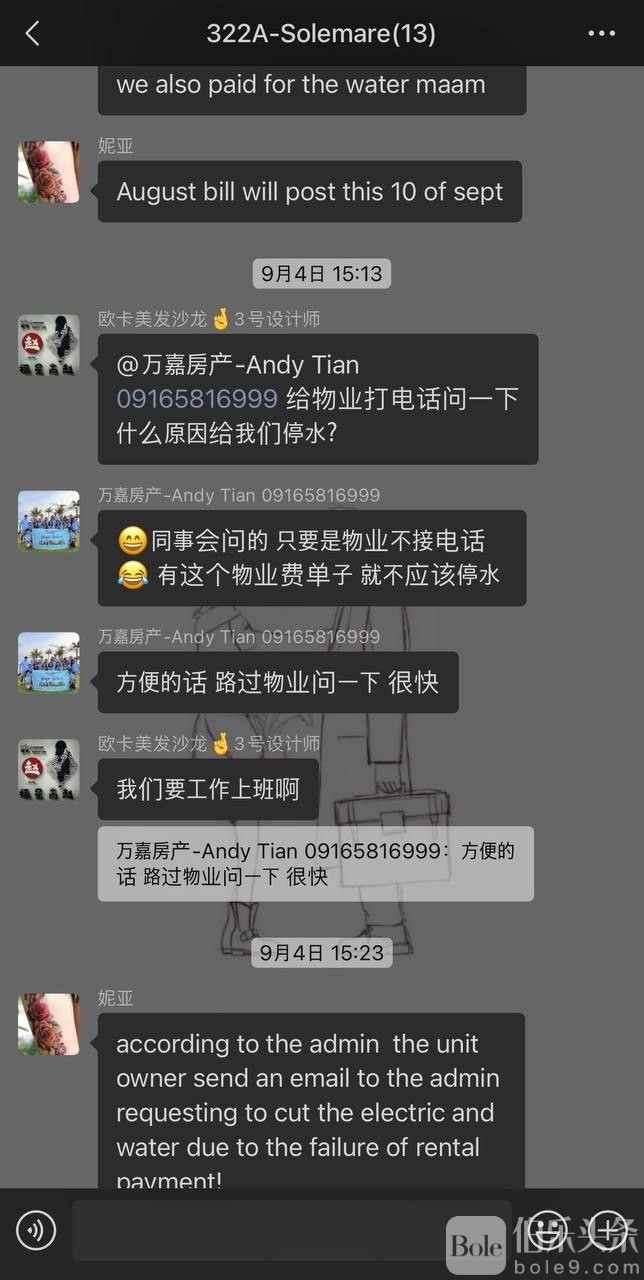 我们自己把租金提前拿出来垫付了一年的物业费 好景不长 没过多久,他们再次给我们进行了断电断水 我们第一时间找中介沟通,想知道什么情况 才知道中间有涉及另外一个菲律宾🇵🇭中介以及房东还有SPA