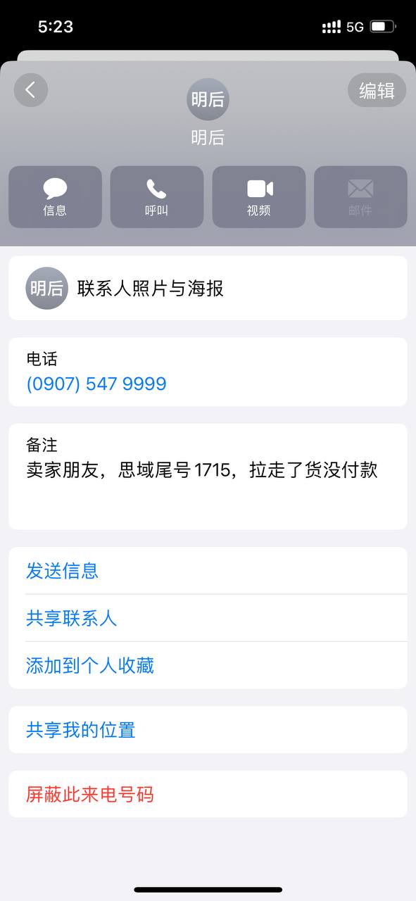 今天早上4:00卖JBL的喇叭,和一个猫咪烘干器,总价6000RMB,这个人派他朋友过来拉货,是个黑色的思域,尾号1715,说装好后发支付宝转帐,然后拖拉弄到早上5:00,卖家说困了就睡着了,帐也没有转,他朋友打电话也没接,然后他朋友说睡醒了转,到现在卖家删除了所有聊天记录,是不打算转帐的意思了。